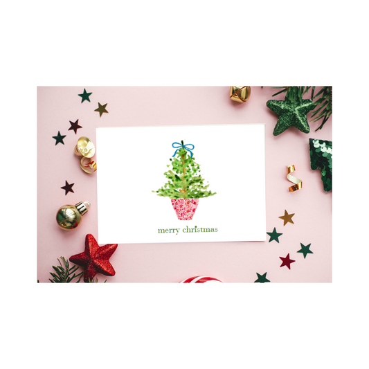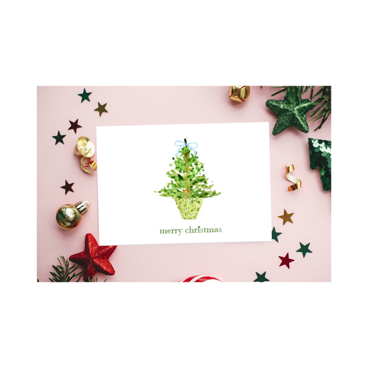 Boxed Greeting Card Set (10) - chinoiserie potted tree in green, lined envelopes