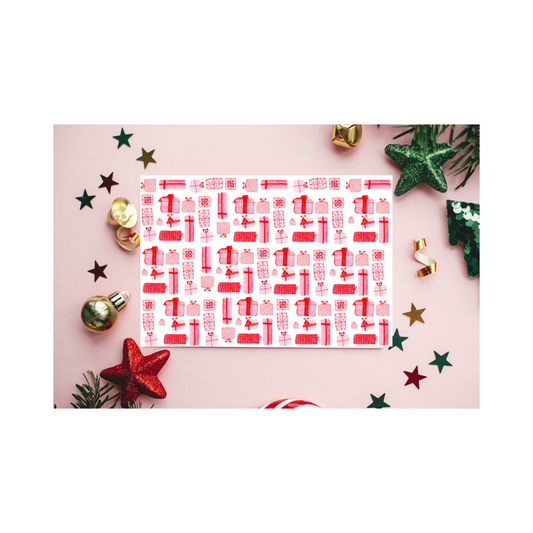 Boxed Greeting Card Set (10) - red gifts, lined envelope